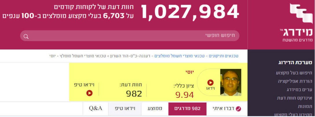 דירוג גבוהה ביותר באתר מדרג: